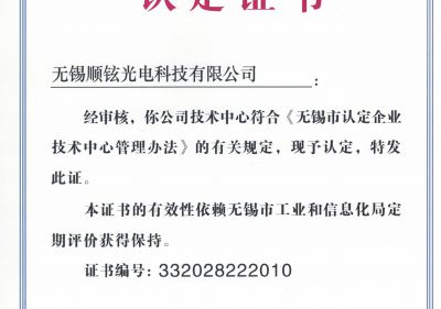 無(wú)錫市企業(yè)技術(shù)中心證書(shū)