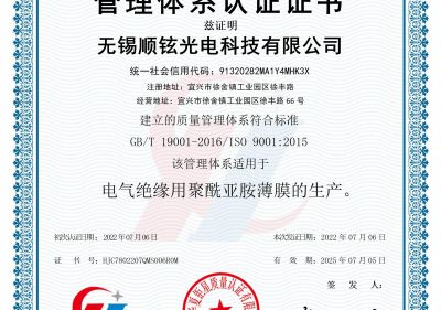 無(wú)錫順鉉光電質(zhì)量管理體系認(rèn)證證書(shū)(Q)